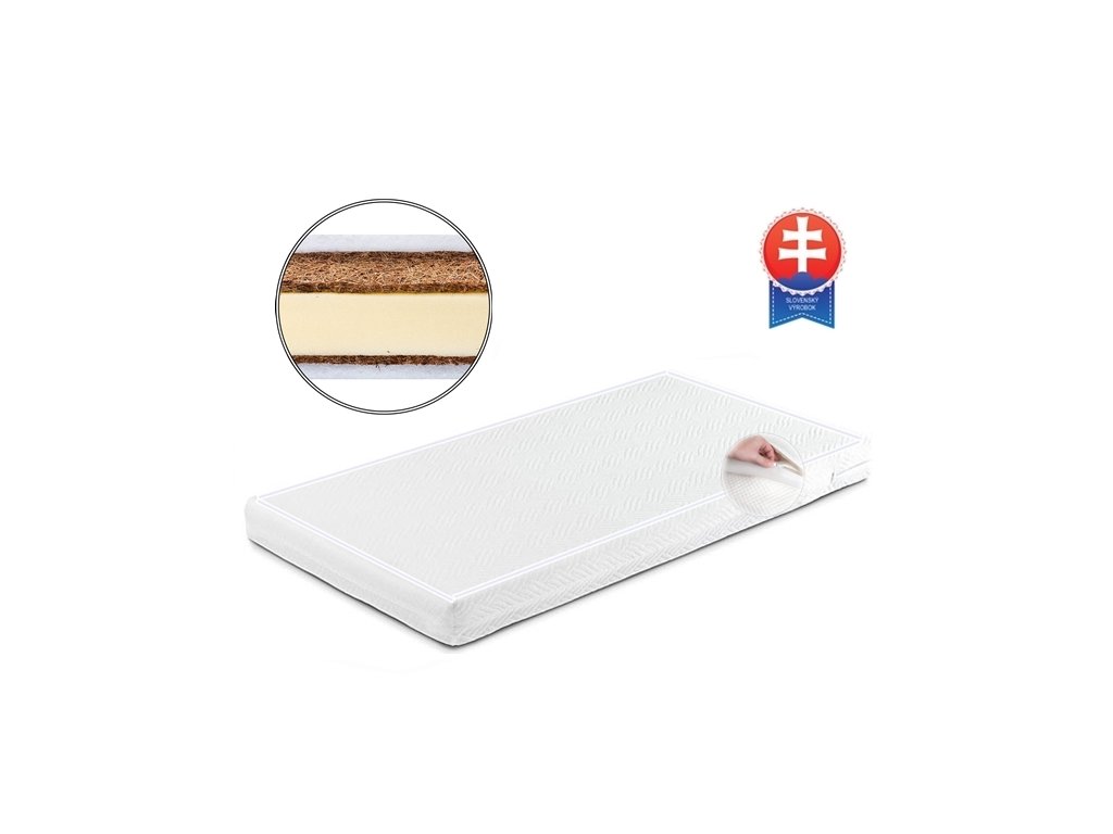 Výplň matraca: 2x vložka prírodné kokosové vlákno + molitanové jadro.