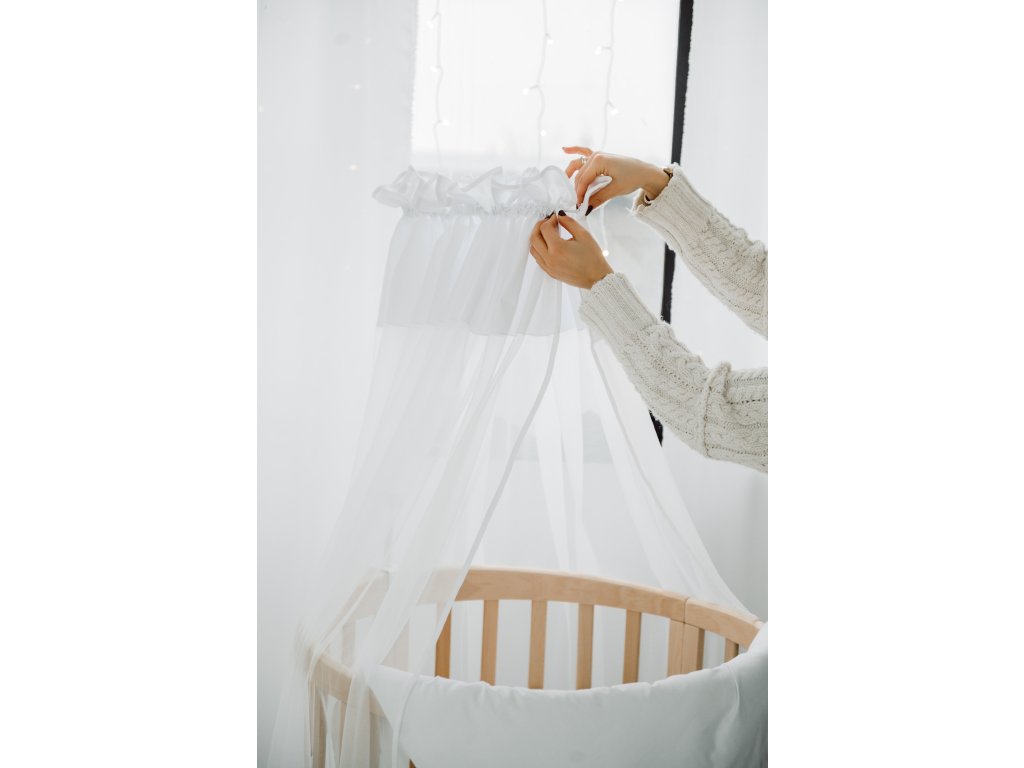 Okrúhla rastúca postieľka je vyrobená z bukového dreva a má ekologický náter na báze vody, ktorý spĺňa európsku normu EV 71-3. Náter je pre deti bezpečný a je odolný voči mechanickému poškodeniu. Trojdielny matrac je z peny T25 s bavlneným poťahom. Poťah je možné prať na 30° C.