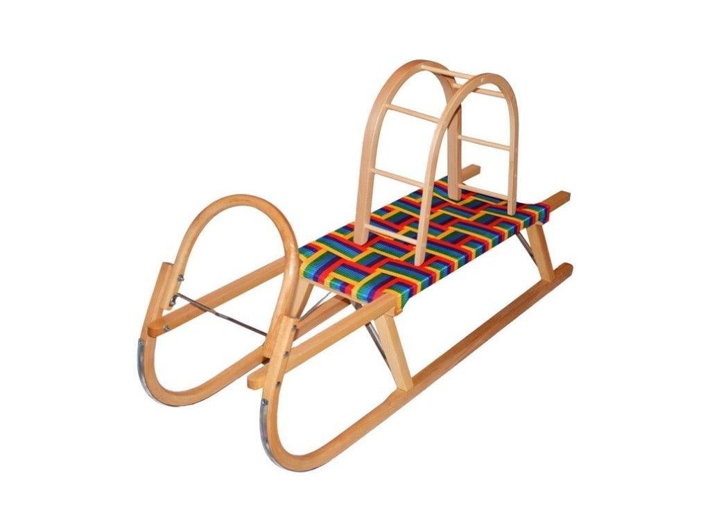 Drevené sánky s rozmerom až 120 cm sú vyrobené z bukového dreva a zalakované čírym lakom.