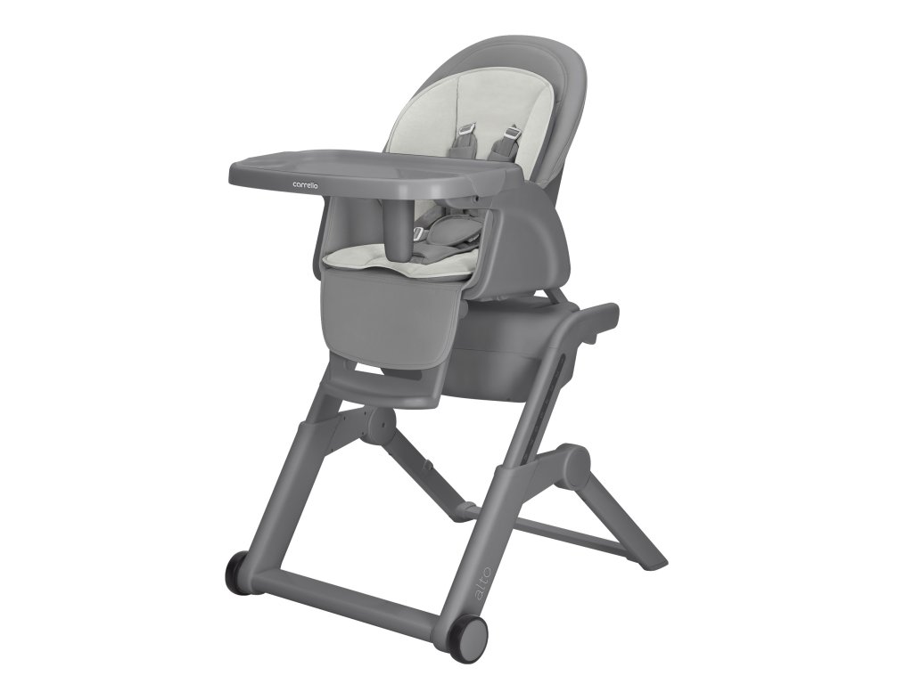Maximálne zaťaženie – 15 kg. Ak chcete stoličku Alto používať ako detskú stoličku, zaistite sedadlo v stabilnej polohe pomocou zaisťovacích mechanizmov. Tác je možné bezpečne pripevniť a vybrať v jednej z troch dostupných polôh. Súčasťou balenia je odnímateľný tác.