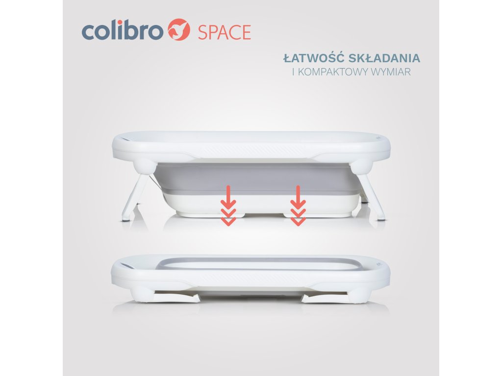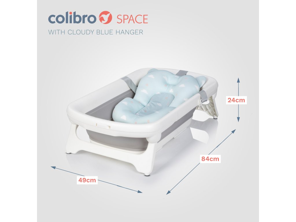 COLIBRO SPACE je veľká, skladacia detská vanička so zabudovaným teplomerom, držiakom na sprchu a protišmykovou podložkou. Je určená pre deti od narodenia do 3 rokov. Jeho veľkosť a kapacita zabezpečujú dlhú dobu používania. Celková dĺžka je až 84 cm a objem až 40 litrov. Vaňa SPACE je jednou z najväčších skladacích vaní dostupných na trhu. Má špeciálne vystuženú štruktúru, takže sa neprehýba ani pri prenášaní vodou.