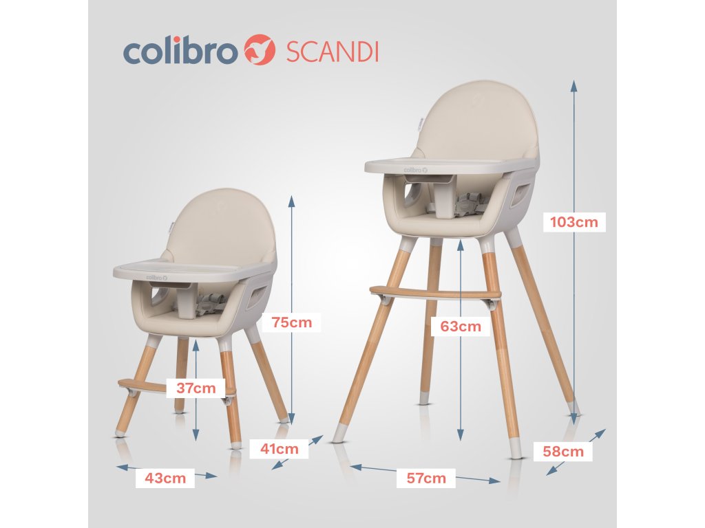 Stolička na kŕmenie 3v1 SCANDI od COLIBRO sa vyznačuje moderným škandinávskym tvarom. Sedadlo je kombinované s nohami z prírodného dreva. Farby zahŕňajú 4 módne kombinácie, ktoré určite dokonale zapadnú do dekorácie modernej kuchyne a jedálne.